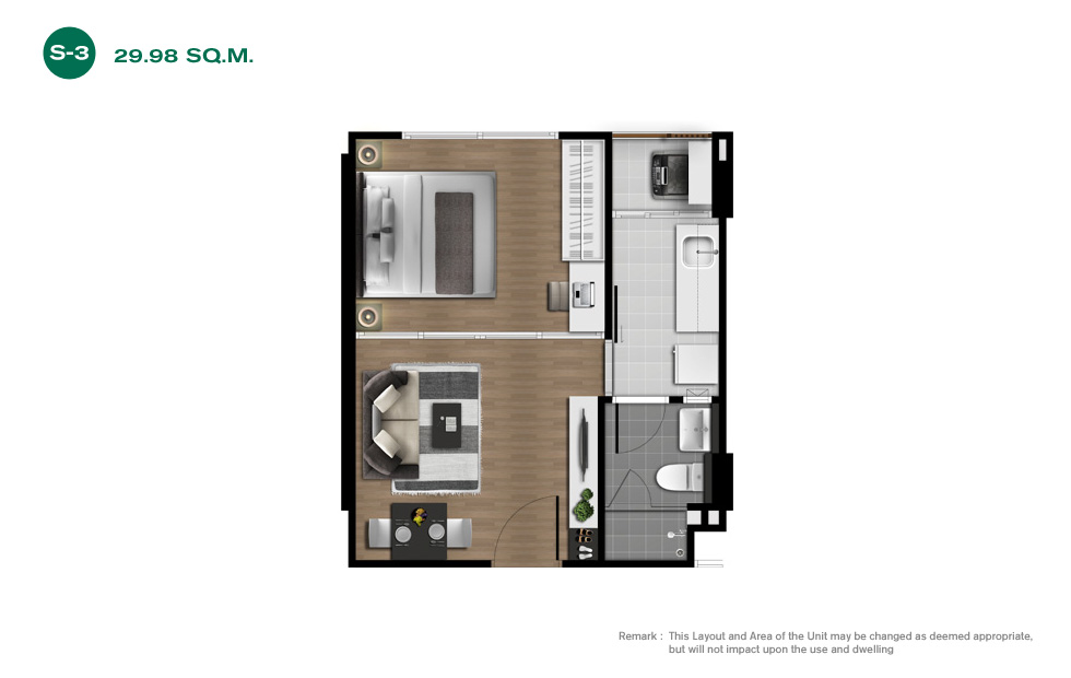 ขนาด 29.98 - 30.36 ตร.ม. ราคาประมาณ 1.3 - 1.5 ล้านบาท - ห้องแบบ 1 ห้องนอน