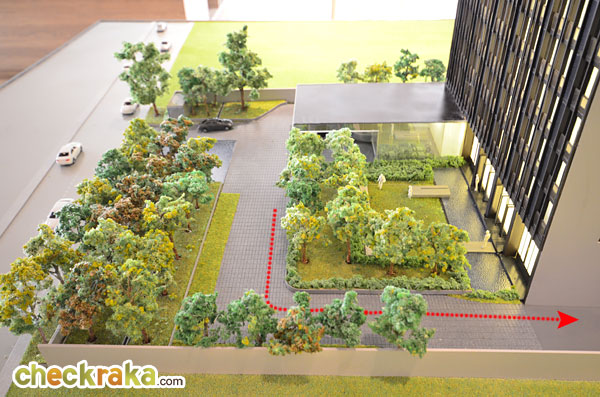 โมเดลโครงการมุมมองจากทิศตะวันตก ติดอาคารพักอาศัยสูงประมาณ 2 ชั้นเช่นกัน