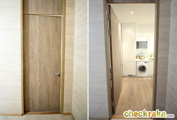 - รูปแบบห้องและวัสดุ - ลักษณะห้องพักอาศัยแบ่งเป็น 4 แบบ หลักด้วยกัน ตั้งแต่ 1 ห้องนอน - เพนท์เฮาส์ ฟังก์ชั่นการจัดวางค่อนข้างลงตัว วัสดุคุณภาพระดับพรีเมียมที่ทางโครงการให้มาถือว่าดีกว่ามาตรฐานคอนโดทั่วไป ไม่ว่าจะเป็น ประตูแบบ Digital Door Lock, เคาน์เตอร์ครัวแบบหินเทียม พร้อมด้วยชุดครัวแบบ Built-in รวมถึงเคาน์เตอร์อ่างล้างหน้าหินอ่อนในห้องน้ำ นอกจากนี้ทุกๆ ห้องนอนและห้องนั่งเล่นก็ยังมีระเบียง พร้อมกระจกสูง 2.95 เมตร ที่ซ่อนรางมานมาให้ครบเช่นกัน สำหรับห้องแบบ 1 ห้องนอน จะโดดเด่นด้วยตู้เสื้อผ้าแบบ Walk in closet และมีอ่างอาบน้ำให้ ส่วนห้องแบบ 3 ห้อง จะจัดวางห้องนอนอยู่ด้านข้าง ทำให้เหลือที่วางตรงกลางห้องค่อนข้างเยอะ ให้ความรู้สึกเหมือนอยู่บ้าน ซึ่งมาพร้อมกับห้องน้ำแบบ Double access ที่เข้าออกได้ 2 ทางเพิ่มความสะดวกในการใช้งาน
