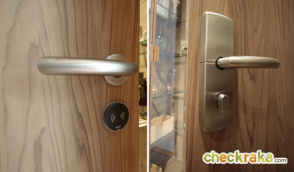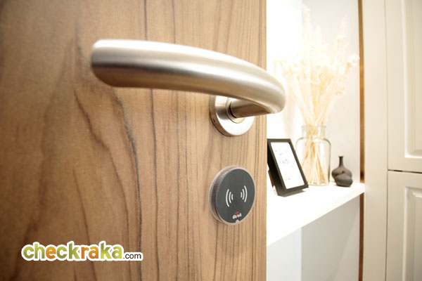 ระบบ Digital Door Lock ระบบ Access Control ด้านในเป็นมือจับแบบก้านโยกเหมือนห้องที่แล้ว