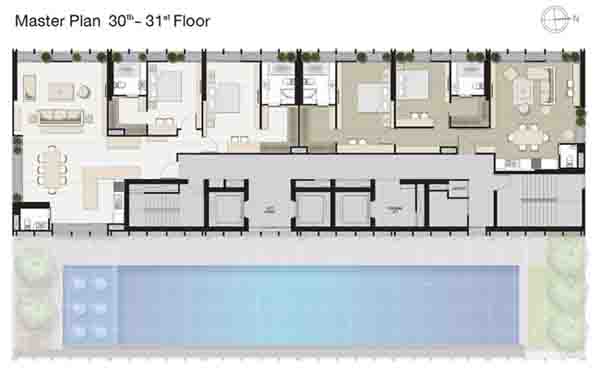 Master Plan ชั้น 29 เป็นส่วนของ Facility ประกอบด้วย ส่วนของสระว่ายน้ำ, ห้องฟิตเนส, ห้องสตรีมแยกชายหญิง,