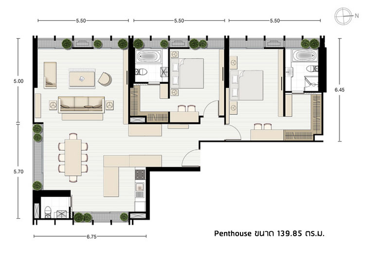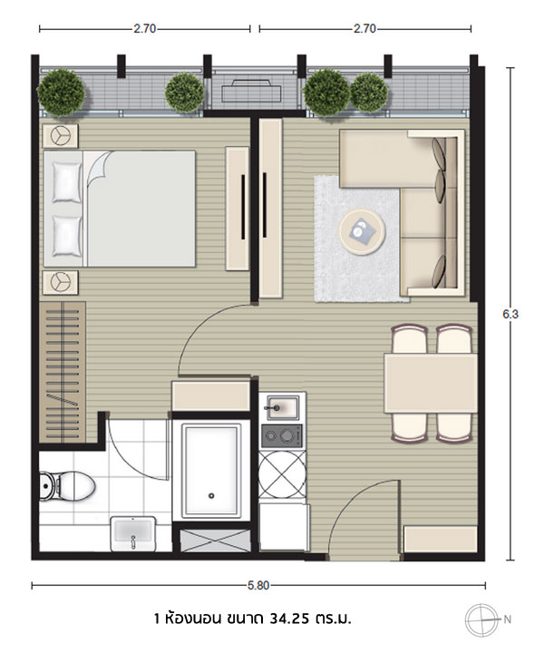 - ขนาดตั้งแต่ 34 - 139 ตร.ม.