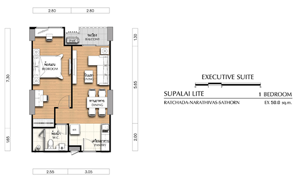 Unit Plan 1 ห้องนอน ขนาด 50 ตร.ม.