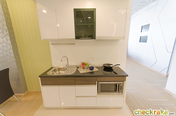 มาพร้อมกับอ่างล้างจานขนาดพอดีๆ ส่วนไมโครเวฟ เตาไฟฟ้า เครื่องดูดควันไม่ได้มีให้นะคะ