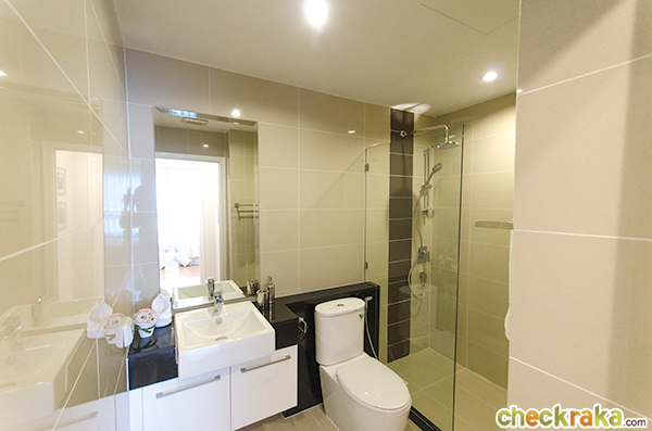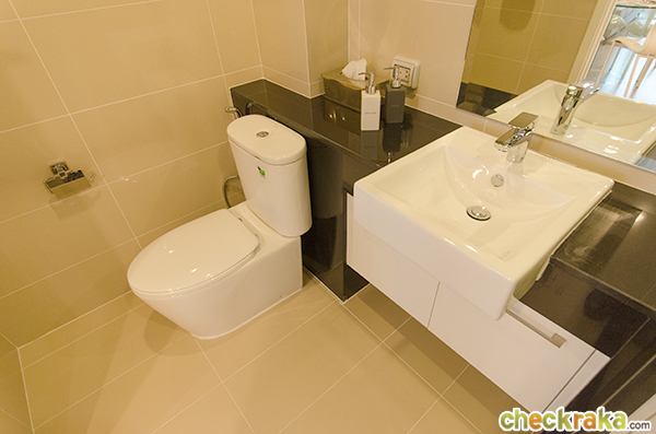 ภายในห้องน้ำทางโครงการจะให้ตามที่ห้องตัวอย่างโชว์เลยค่ะ ประกอบด้วย อ่างล้างหน้า ชั้นเก็บของใต้อ่าง กระจก โถสุขภัณฑ์พร้อมสายฉีด ฉากกั้นอาบน้ำแบบกระจกนิรภัย ฝักบัว Rain shower และเครื่องทำน้ำอุ่นค่ะ