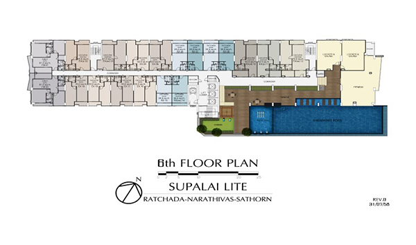 Floor Plan ชั้น 6 เป็นชั้นเริ่มต้นของยูนิตพักอาศัย และเป็นที่ตั้งของส่วนกลางด้วยค่ะ