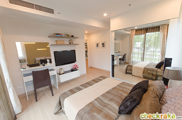 ตรงกันข้ามกับห้องน้ำก็จะเป็นห้องนอน ห้องนอนกว้างขวางทีเดียวค่ะ ทางโครงการจัดแบ่งไว้เป็น 3 โซน