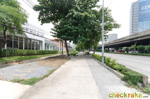 เดี๋ยวเราลองเดินไปทางซ้ายมือโครงการกันค่ะ ฟุตบาทด้านหน้าโครงการค่อนข้างกว้าง