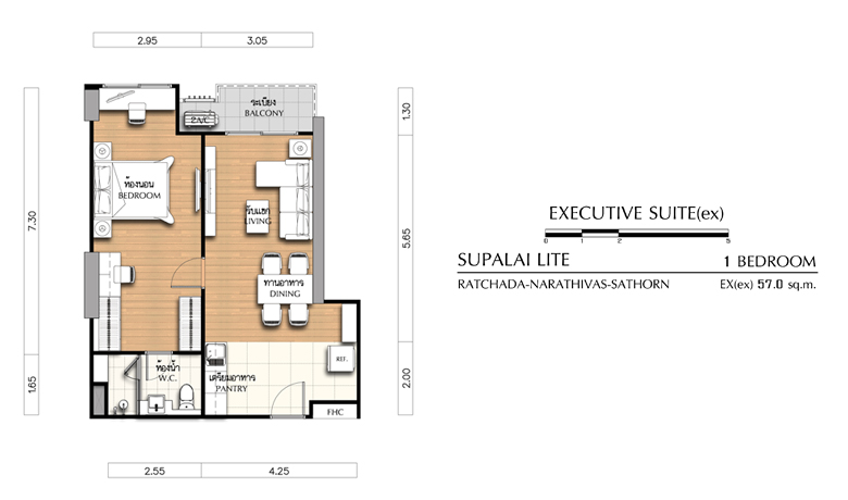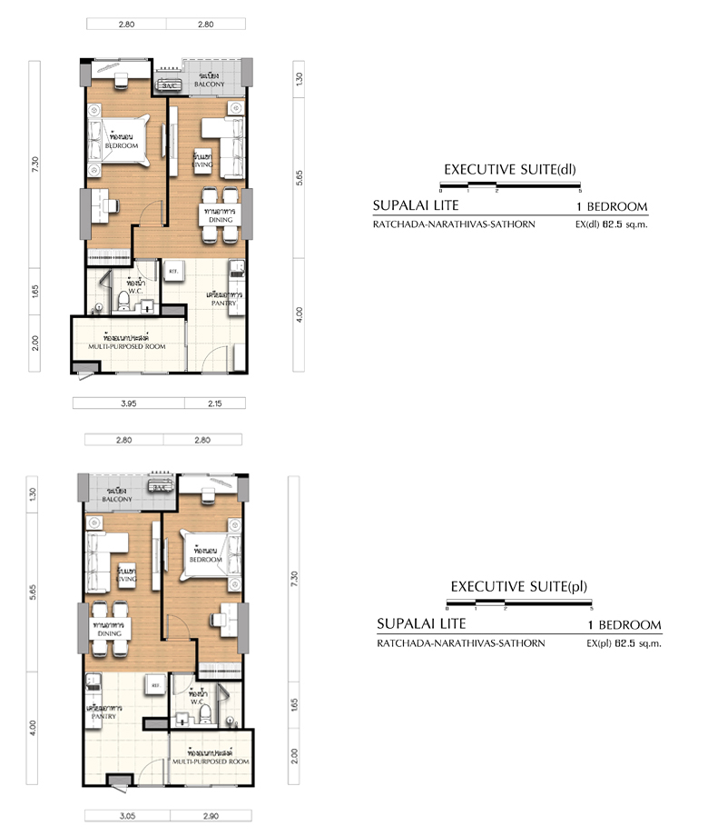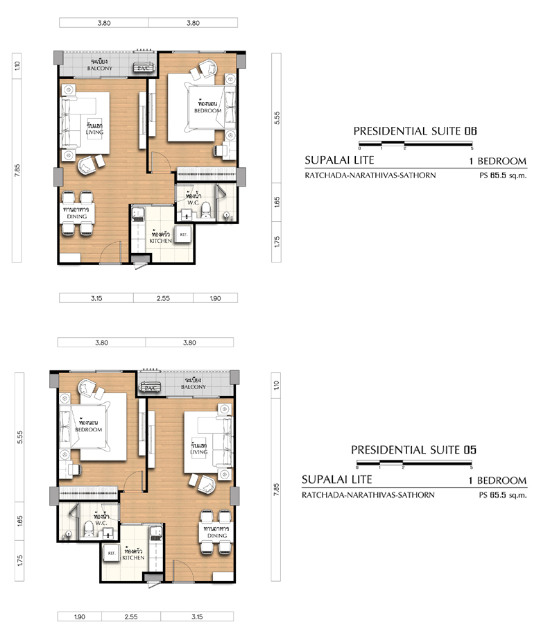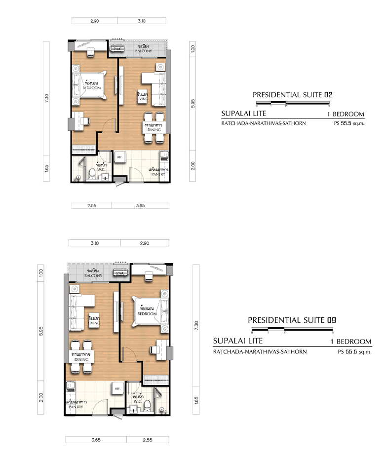 - 1 Bedroom ขนาด 55 ตร.ม., 65.5 ตร.ม., 66 ตร.ม., และ 66.5 ตร.ม.