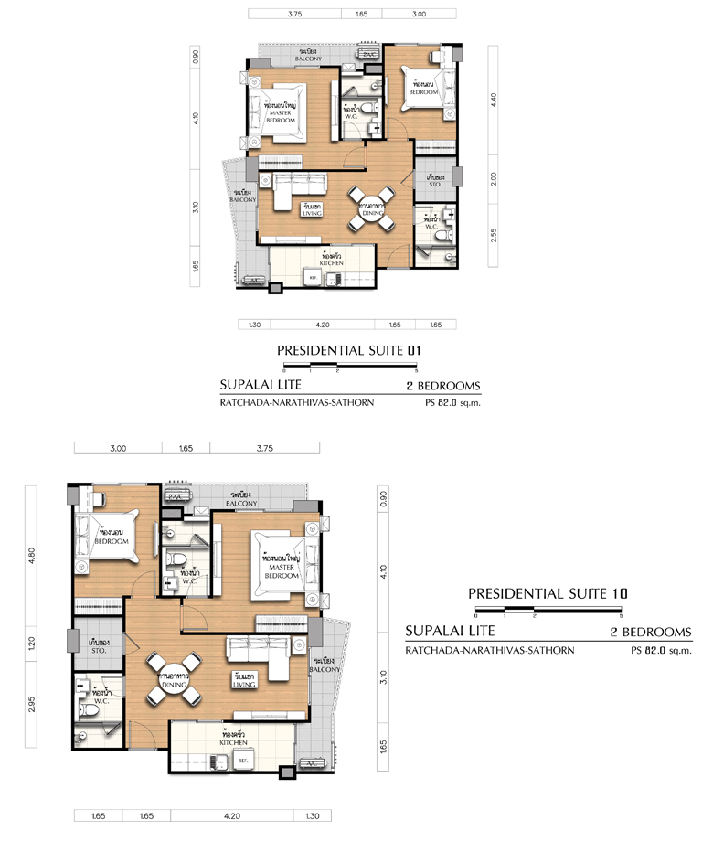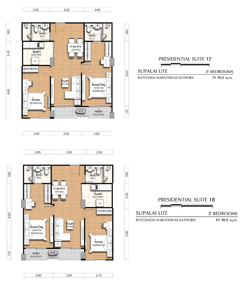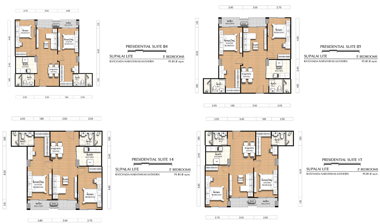 - 2 Bedroom ขนาด 76.5 ตร.ม., 81 ตร.ม., 82 ตร.ม., และ 83.5 ตร.ม.
