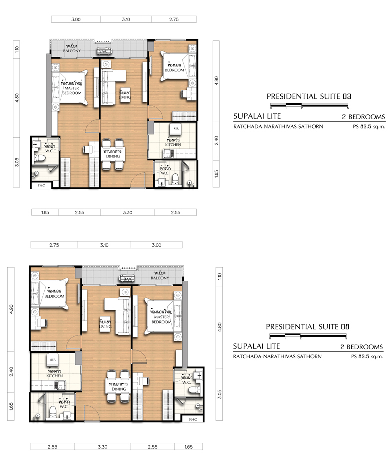 - 2 Bedroom ขนาด 81.5 ตร.ม., 83 ตร.ม., 84 ตร.ม., และ 86 ตร.ม.
