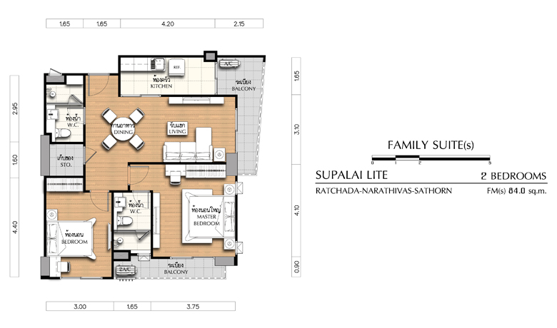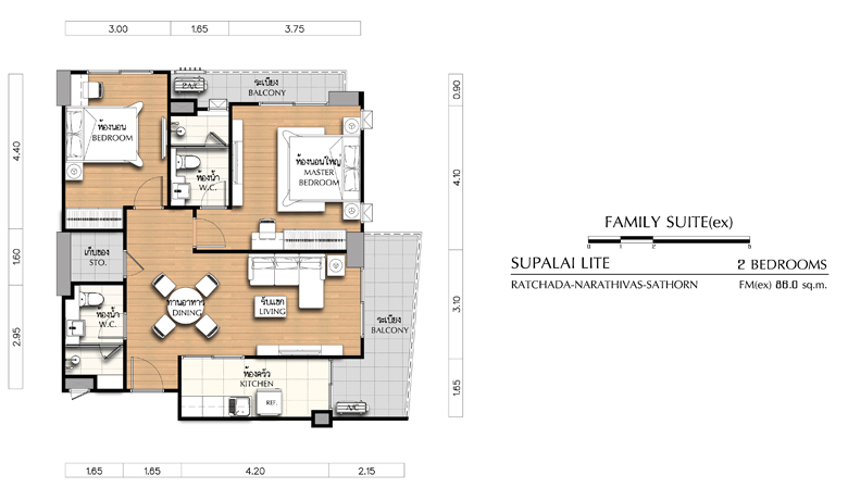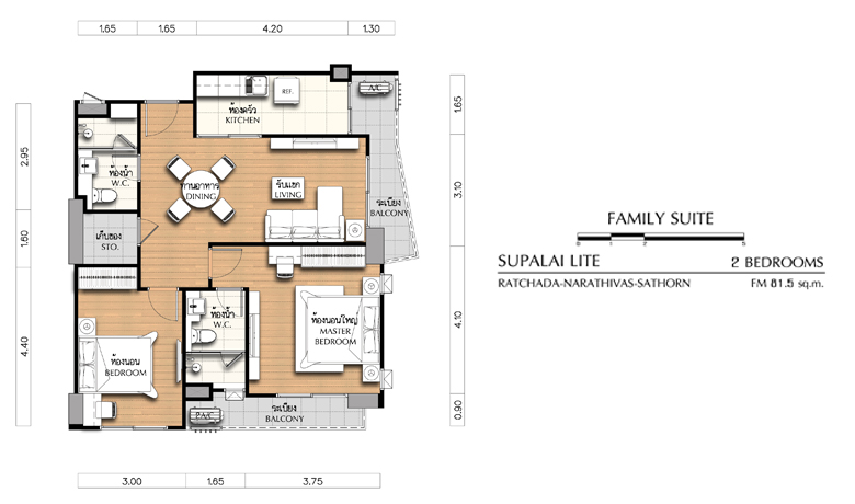 Unit Plan 2 ห้องนอน ขนาด 81.5 ตร.ม.