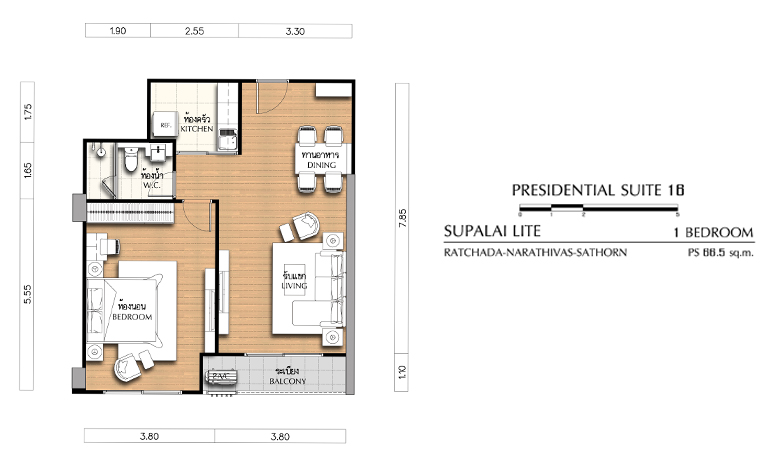 2) Typical จะอยู่ที่ชั้น 6-25 มีแบบ 1 ห้องนอนและ 2 ห้องนอน