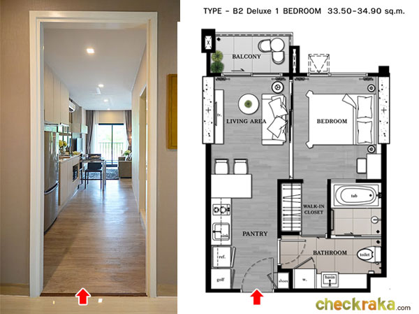 ภาพห้องตัวอย่างแบบ 1 ห้องนอน ขนาด 34 ตร.ม.