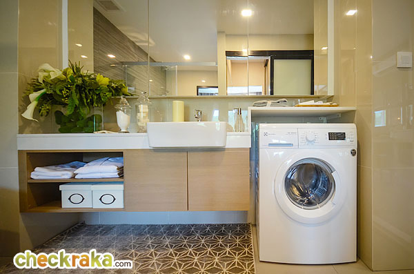 ส่วนเครื่องซักผ้าก็จะวางอยู่ในห้องน้ำทางโครงการ Built ตู้สำหรับเก็บเครืองซักผ้าให้เรียบร้อย