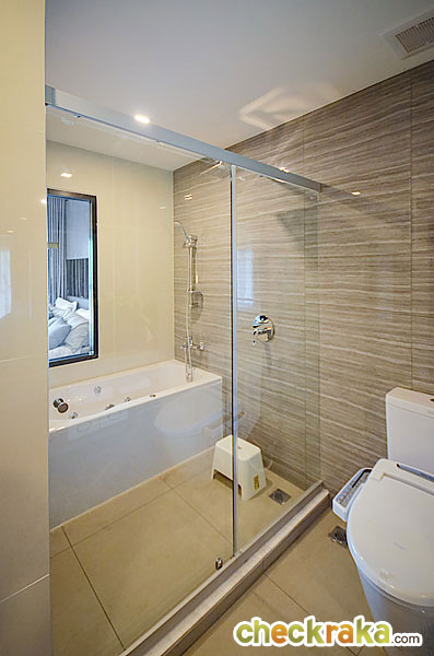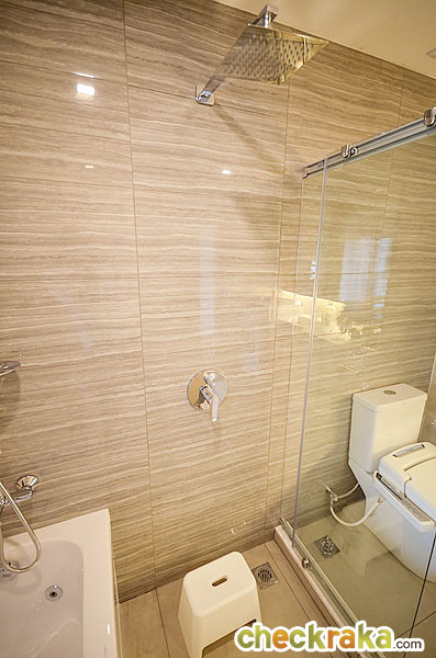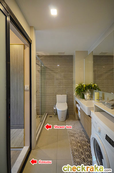 ภายในห้องน้ำจะมี Shower box กระจกนิรภัยแยกส่วนแห้ง และส่วนเปียกออกจากกันอย่างชัดเจน