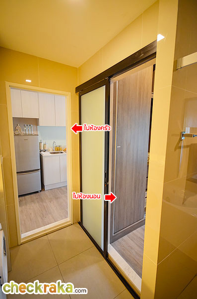 ห้องตัวอย่างที่โครงการไม่ได้ติดประตูให้มาค่ะ แต่ห้องของจริงที่ประตูจะได้เป็น Digital Door Lock นะคะ