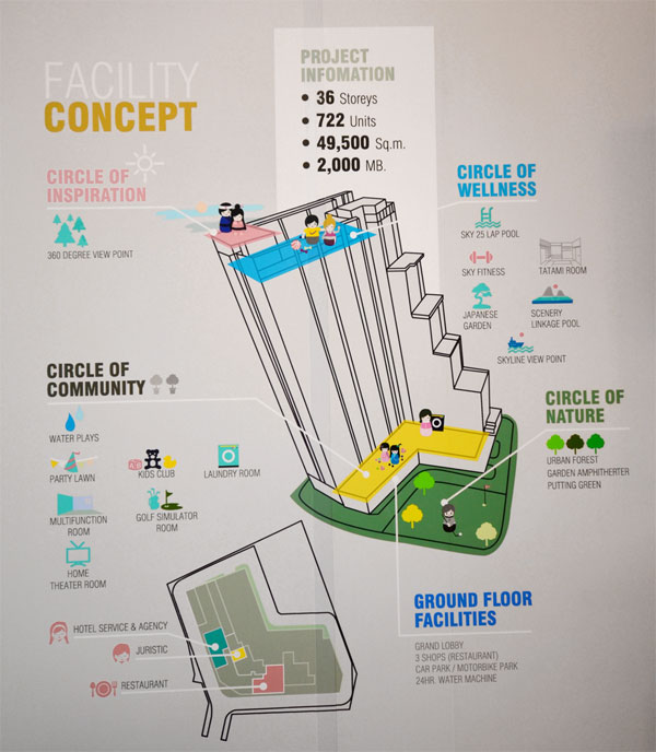 ในส่วนของสิ่งอำนวยความสะดวก ต้องบอกว่าโครงการนี้เค้าจัดมาให้ลูกบ้านเยอะมากๆ โดยเฉพาะชาวญี่ปุ่นรับรองว่าต้องชื่นชอบอย่างแน่นอน เนื่องจากจัดมาเพื่อตอบโจทย์ฟังก์ชั่น Life style ของชาวญี่ปุ่นเป็นพิเศษ เพราะในย่านศรีราชาถือว่ามีชาวญี่ปุ่นอยู่ค่อนข้างหนาแน่น และเชื่อว่าลูกบ้านที่จะมาอยู่ส่วนใหญ่ก็น่าจะเป็นชาวญี่ปุ่นด้วยเช่นกัน โดยสิ่งอำนวยความสะดวกของที่นี้แบ่งออกเป็น 3 โซนด้วยกันค่ะ คือจะอยู่บริเวณชั้น G โดยจะกระจายอยู่บริเวณรอบๆ โครงการ ชั้น 4 และบนชั้น 35-36 ของอาคาร โดยสิ่งที่ทางโครงการให้มาประกอบด้วย