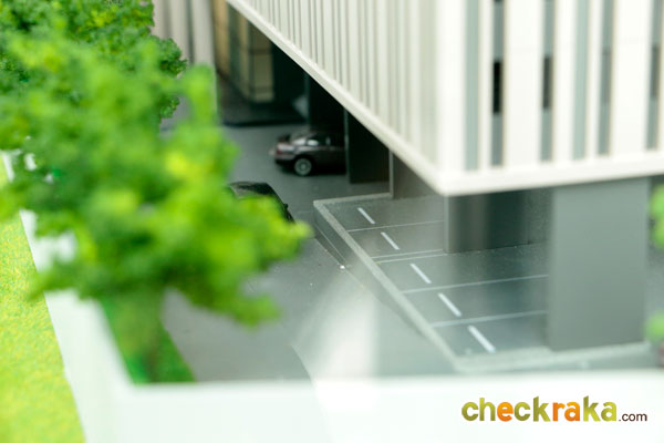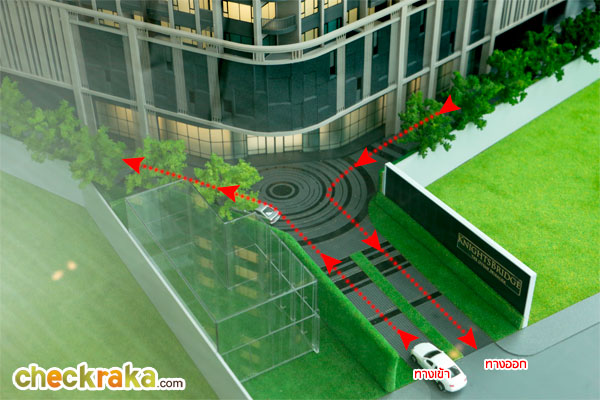 จากหน้าประตูโครงการขับเข้ามาจะบังคับให้เลี้ยวซ้าย เพื่อตรงไปขึ้นลานจอดรถด้านหลังของโครงการ