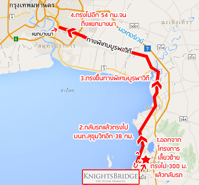เดี๋ยวเรามาดูภาพการเดินทางมาโครงการจากกรุงเทพกันดีกว่านะคะ โดยเริ่มจากตรงแยกบางนาขึ้นทางพิเศษบูรพาวิถี