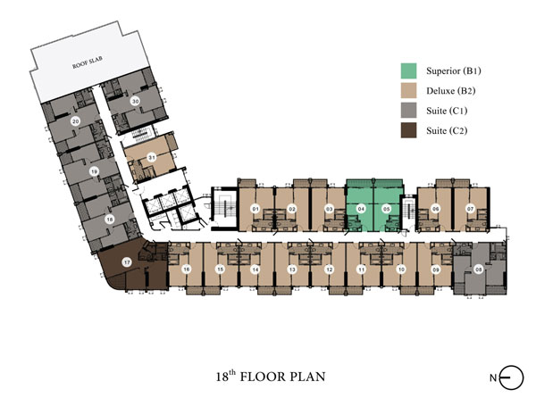 ชั้น 18 : เป็นพื้นที่พักอาศัยทั้งหมด มีจำนวนห้องพักอาศัยอยู่ที่ 31 ยูนิต และมี Roof Slab มาให้