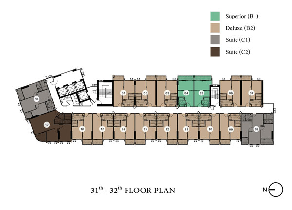 ชั้น 31 - ชั้น 32: เป็นพื้นที่พักอาศัยทั้งหมด มีจำนวนห้องพักอาศัยอยู่ที่ 18 ยูนิต/ชั้น