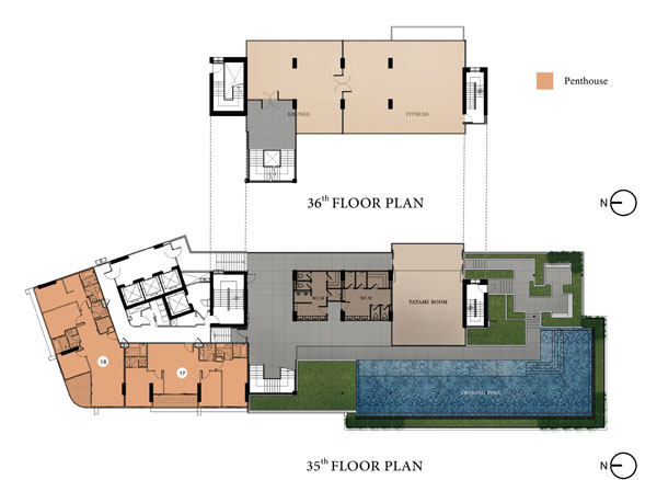 ชั้น 35 : เป็นพื้นที่พักอาศัยแบบ Penthouse จำนวน 2 ยูนิต และส่วนของสระว่ายน้ำ และห้อง Tatami Room สไตล์ญี่ปุ่น