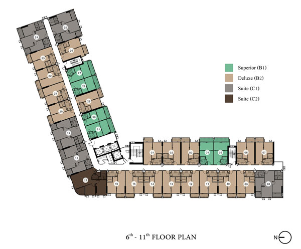 ชั้น 6 - ชั้น 11 : จะเหมือนกันคือเป็นพื้นส่วนพักอาศัยทั้งหมด มีจำนวนห้องพักอาศัยอยู่ที่ 31 ยูนิต/ชั้น