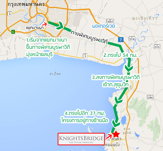 เดี๋ยวเรามาดูภาพการเดินทางมาโครงการจากกรุงเทพกันดีกว่านะคะ โดยเริ่มจากตรงแยกบางนาขึ้นทางพิเศษบูรพาวิถี