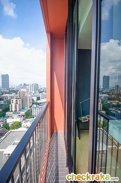 ระเบียงของห้องนอนอาจจะดูเล็กไปหน่อย แต่โครงการตั้งใจออกแบบมาเพื่อให้ลูกบ้านใช้งานภายในห้องอย่างแท้จริง เพราะในชีวิตจริงแล้วเราคงจะใช้เวลาอยู่ที่ระเบียงไม่นานนัก แต่น่าจะใช้งานอยู่ภายในห้องพักอาศัยมากกว่า