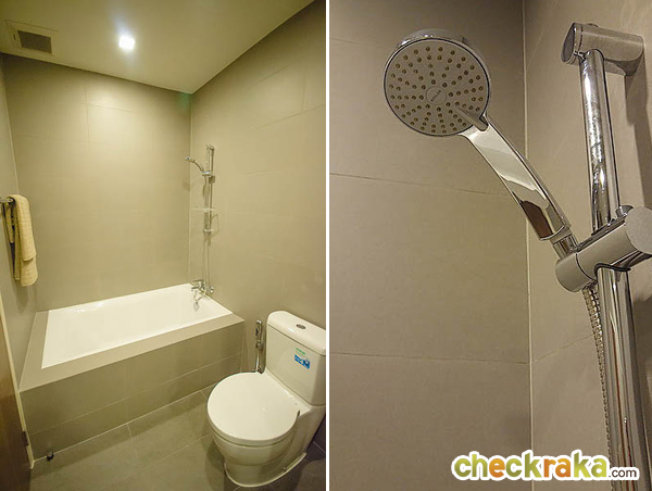 - รูปแบบห้องและวัสดุ - พื้นที่ห้องแต่ละ Type มีขนาดค่อนข้างใหญ่ เหลือพื้นที่ให้ตกแต่งได้อีกเยอะ ได้เฟอร์นิเจอร์แบบ Fully Furnished ซึ่งครบจริงๆ ให้ทุกอย่างตามห้องตัวอย่าง โดยมีการตกแต่งให้เลือกถึง 3 สไตล์ ตามความต้องการ ส่วนวัสดุที่ได้บางอย่างถือว่าดี เช่น พื้นไม้วีเนียร์, หน้า Top เคาน์เตอร์ครัวหินแท้, แอร์แบบฝังฝ้า, หน้าต่างบานใหญ่, สุขภัณฑ์ในห้องน้ำของ Kohler หรือ ทีวีแบบ LED ติดตรงที่ระเบียงเล็กไปนิด และลูกบิดประตูห้องนอนที่ดูธรรมดาไปหน่อย