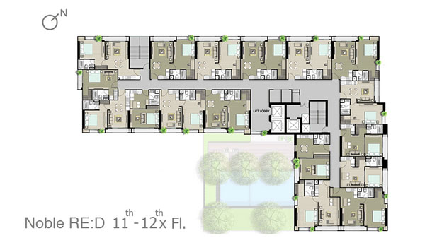 ชั้น 6-12 : จะคล้ายๆ กัน คือเป็นส่วนพักอาศัยทั้งหมด พื้นที่รูปตัว L มีจำนวนห้องพักอาศัยอยู่ที่ 17 ยูนิต/ชั้น