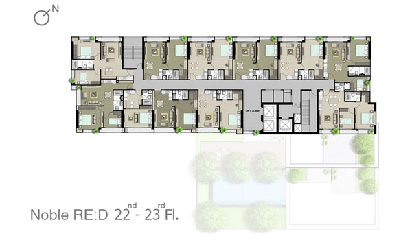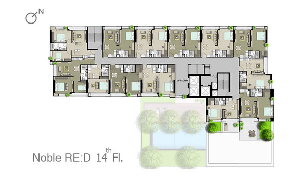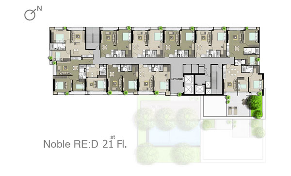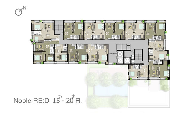 ชั้น 14-20 : จะคล้ายกันคือเป็นส่วนพักอาศัยทั้งหมด แต่จะเริ่มมีห้องแบบ 2 ห้องนอนเพิ่มขึ้นมา
