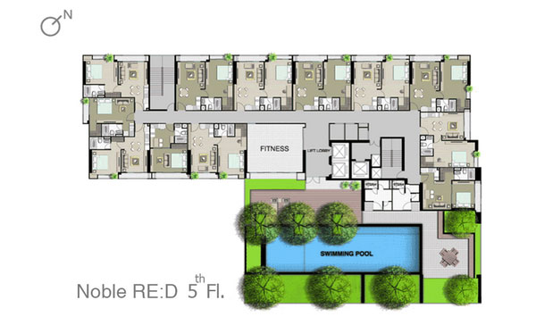 ชั้น 5 : จะเป็นสิ่งอำนวยความสะดวกหลักๆ ของโครงการอย่างสระว่ายน้ำระบบเกลือ, พื้นที่นั่งเล่น, ห้องฟิตเนส