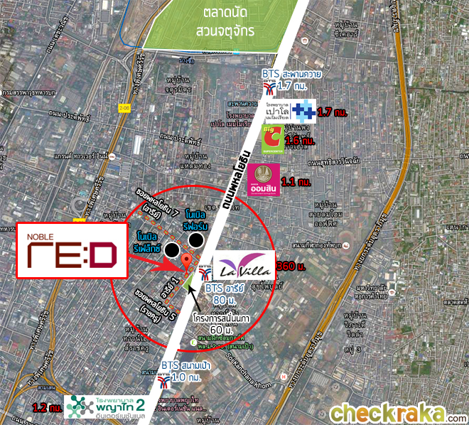 "ลาวิลล่า อารีย์" ระยะทางห่างจากโครงการประมาณ 360 ม.