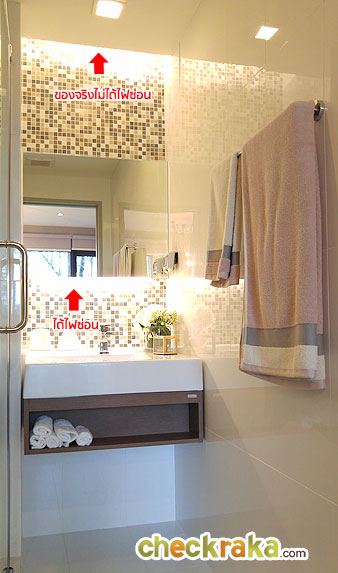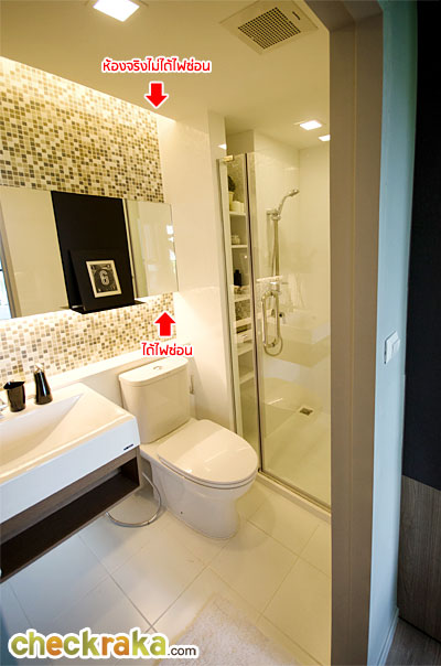 ห้องขายจริงเพดานด้านบนจะชิดติดผนัง และไม่มีไฟซ่อนให้ Shower box เป็นกระจกเทมเปอร์ของ Oversea
