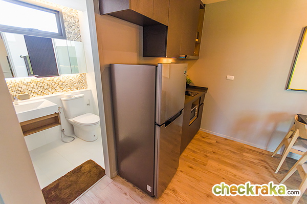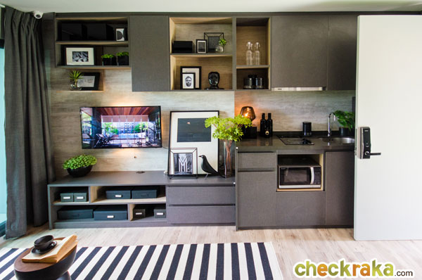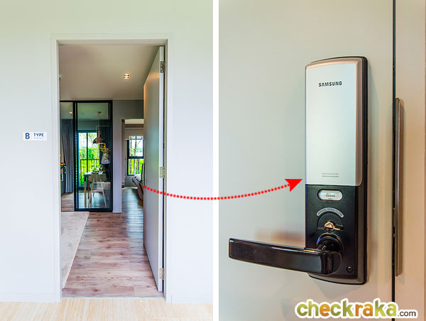 - รูปแบบห้องและวัสดุ - ห้องพักส่วนใหญ่หันหน้าไปทางทิศตะวันตก ทำให้ห้องฝั่งนี้จะโดดแดดช่วงบ่ายแบบเลี่ยงไม่ได้ พื้นที่ห้องแต่ละ Type ขนาดไม่ใหญ่มากแต่จัด Layout และฟังก์ชั่นของห้องออกมาได้ค่อนข้างกว้าง และดูลงตัว ได้เฟอร์นิเจอร์แบบ Fully Furnished ส่วนวัสดุที่ได้เทียบเท่าคอนโดระดับกลาง ไม่ว่าจะเป็น พื้นยางไวนิล, ไฟ LED, ประตู Oversize, Digital door Lock หรือ ทีวี LED ถ้าเทียบกับโครงการในละแวกใกล้เคียงกันแล้วถือว่าโครงการนี้ให้วัสดุที่ดีกว่า