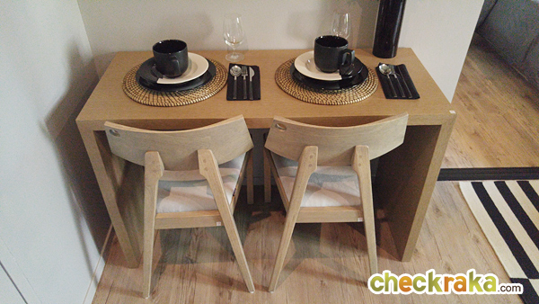 ทางด้านซ้ายติดกับประตู จะเป็นโต๊ะทานข้าว พร้อมเก้าอี้ 2 ตัว