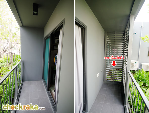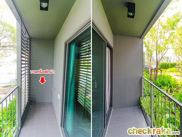 จุดวางเครื่องซักผ้าอยู่ด้านข้างระเบียง