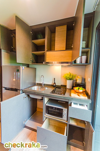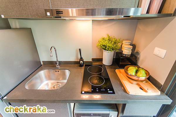 ได้ชุดครัวของ FRANKE เครื่องดูดควันเป็นระบบหมุนเวียน พร้อมไมโครเวฟ และตู้เย็นขนาดประมาณ 6 คิว