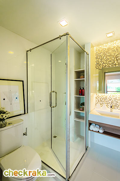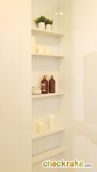 ภายในโซนอาบน้ำเจาะช่องเป็นชั้นสำหรับวางอุปกรณ์อาบน้ำ