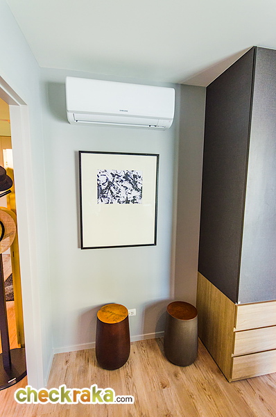 ปลายเตียงเป็นตำแหน่งของตู้เสื้อผ้า และแอร์ขนาด 9,000 BTU อีก 1 เครือง