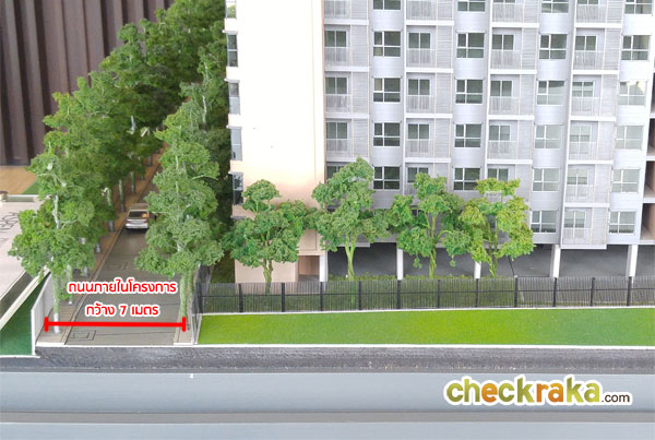ทางเข้าโครงการเป็นถนนส่วนบุคคล กว้าง 7 เมตร เดินรถ 2 ทางสวนกัน