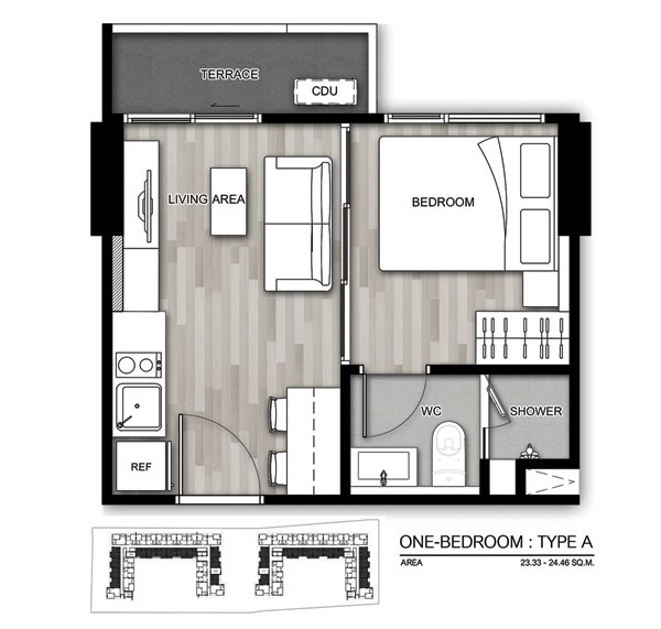 1 ห้องนอน Type A ราคาเริ่มต้น 1.45 ล้านบาท