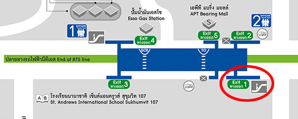 เมื่อถึงสถานีแบริ่งให้ลงทางออกที่ 1 จะลงมาเจอปากทางถนนลาซาลพอดีค่ะ ต้องนั่งรถ 2 แถวต่อเข้าไป