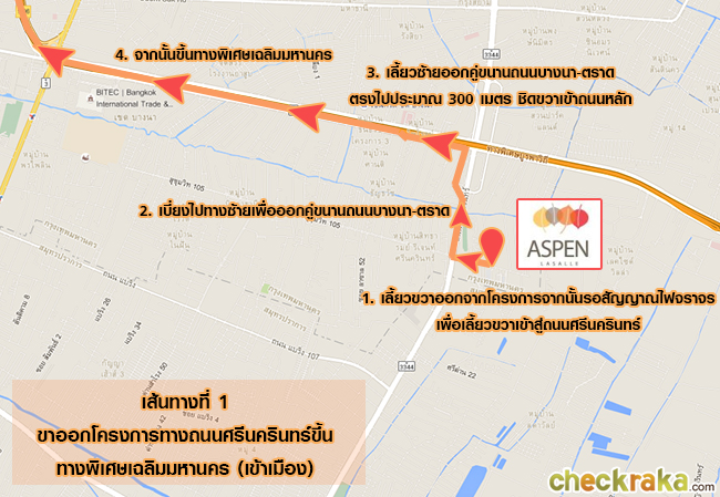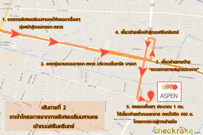 เดี๋ยวเราลองมาดูตัวอย่างการเดินทางด้วยรถยนต์ส่วนตัวจากทางถนนลาซาลกันค่ะ