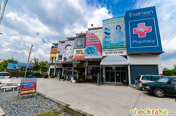 เดินมาอีกนิดหน่อยก็จะเป็นทาวน์โฮมที่เปิดเป็นร้านขายยา ขายอาหาร ร้านเสริมสวยค่ะ