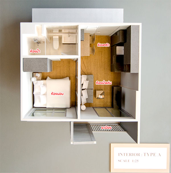 ภาพห้องตัวอย่างแบบ 1 ห้องนอน Type B