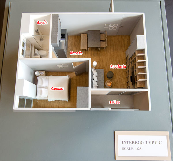 ภาพห้องตัวอย่างแบบ 1 ห้องนอน Type C