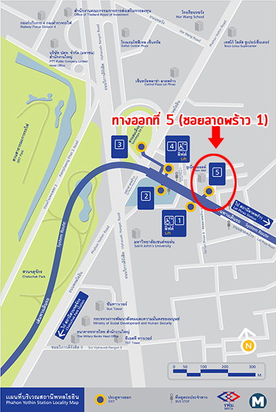 MRT สถานีพหลโยธิน (ทางออกที่ 5) ห่างจากโครงการประมาณ 350 เมตร